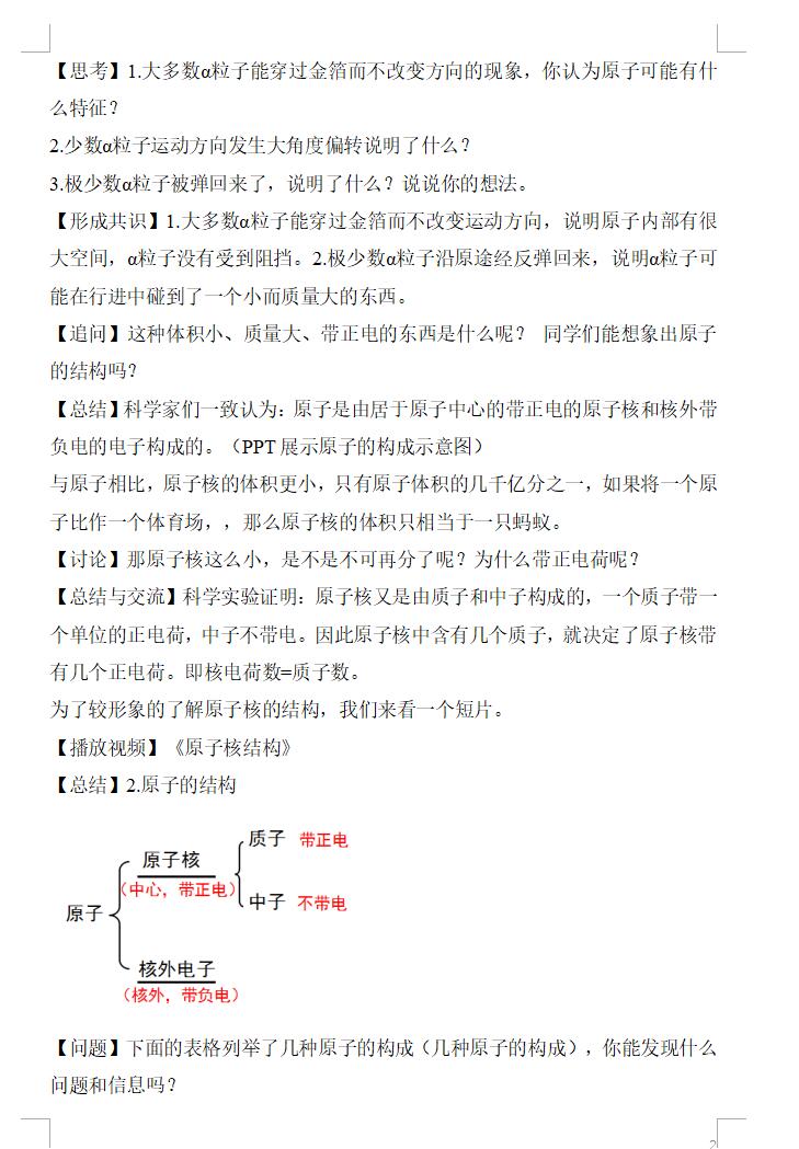 人教版化学九上3.2原子的结构(第1课时)教学设计(图片版)(2)