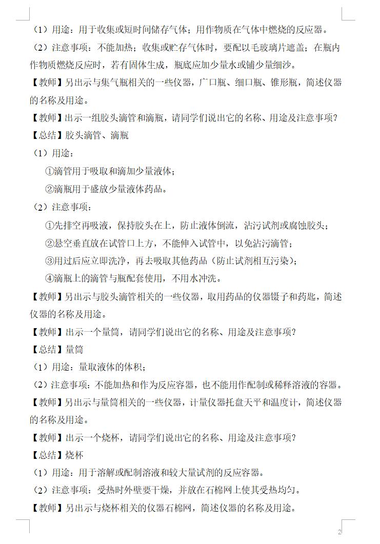 人教版化学九上1.3走进化学实验室(第1课时)教学设计(图片版)(2)