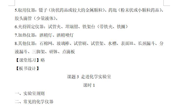 人教版化学九上1.3走进化学实验室(第1课时)教学设计(图片版)(4)
