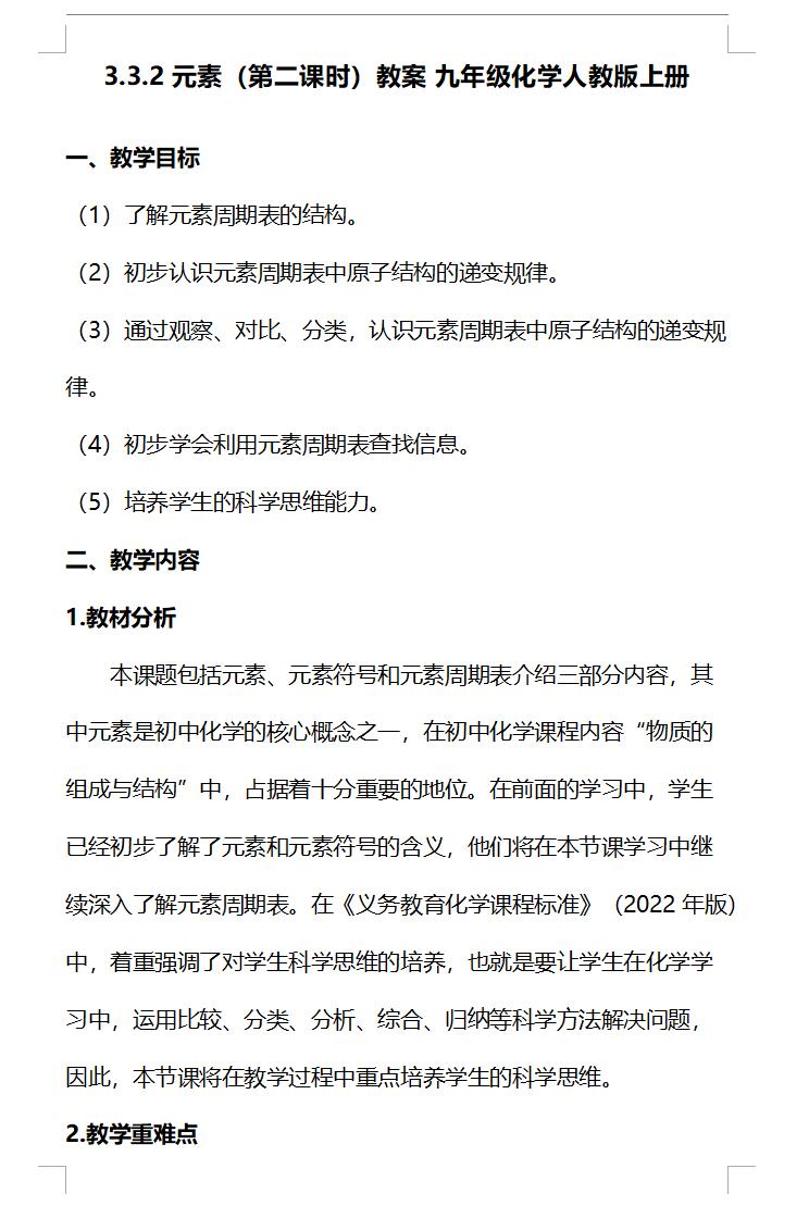 人教版九上化学3.3元素(第二课时)教案(下载版) 2023-08-29 16:02:16佚名 点击免费领取中考核心考点资料! 人教版九上化学3.3元素(第二课时)教案(下载版) 请下载附件: 《人教版九上化学3.3元素(第二课时)教案(下载版)》 (本地下载在线阅读)