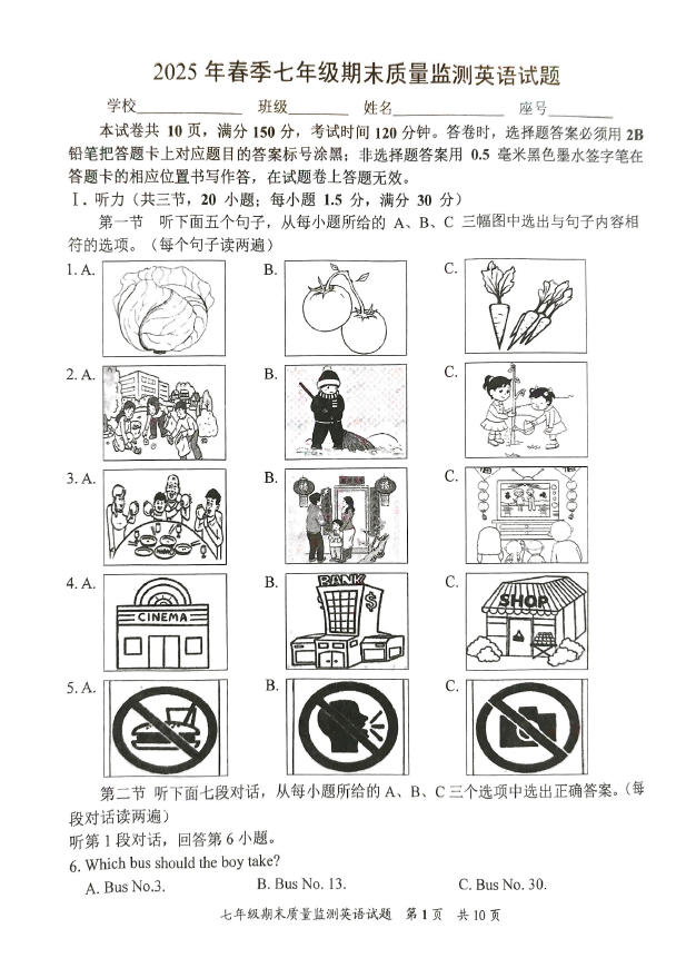 资料内容:【25年 初一 初二 初三期末考试真题】