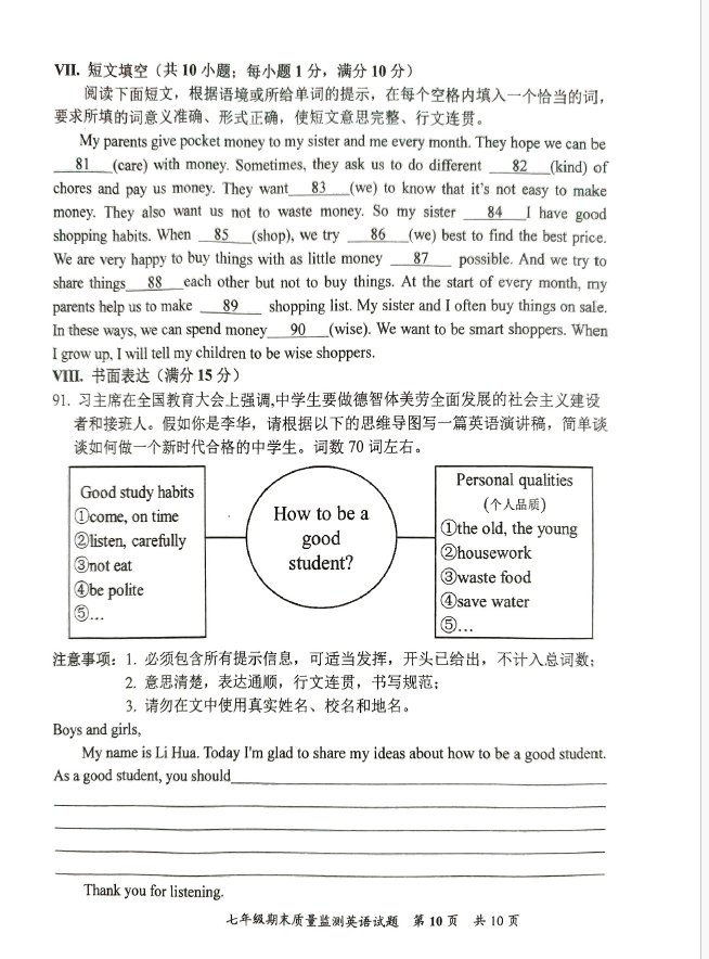 2024-2025学年福建泉州安溪县七年级下学期英语期末真题(图片版)(10)