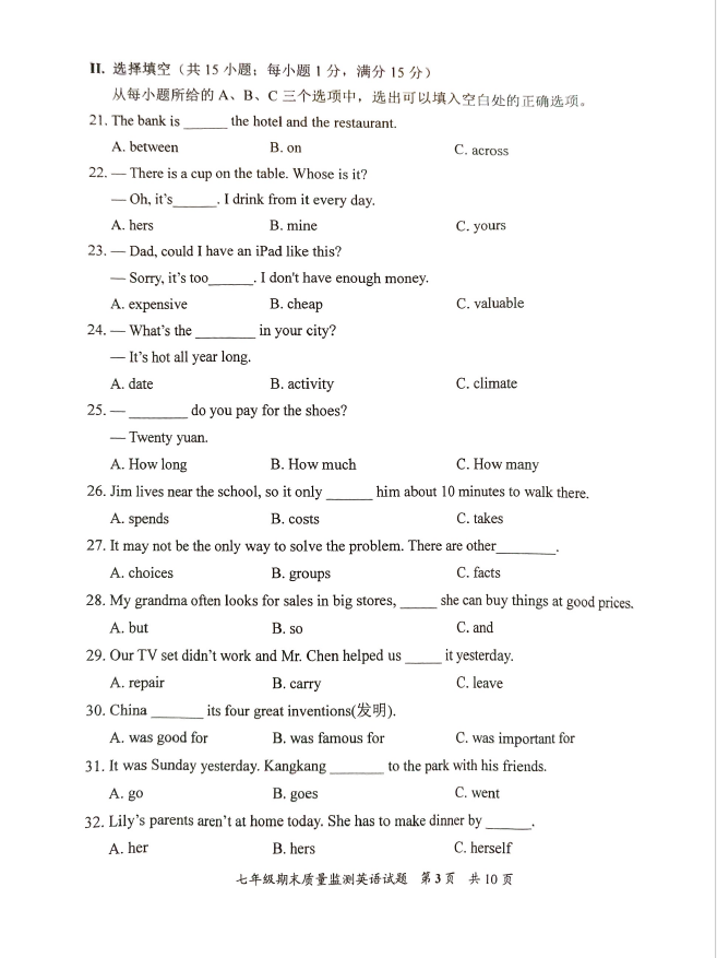 2024-2025学年福建泉州安溪县七年级下学期英语期末真题(图片版)(3)