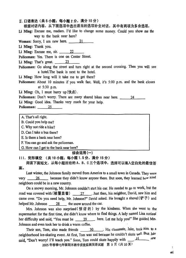 2024-2025学年福建泉州永春县七年级下学期英语期末真题(图片版)(3)
