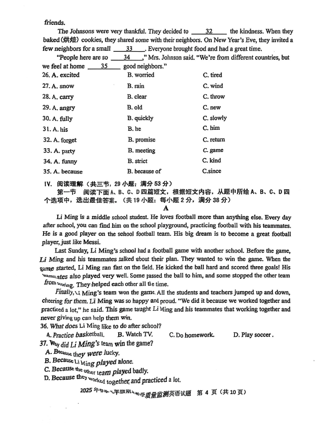2024-2025学年福建泉州永春县七年级下学期英语期末真题(图片版)(4)