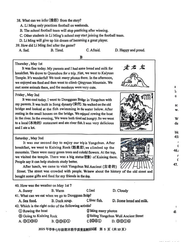 2024-2025学年福建泉州永春县七年级下学期英语期末真题(图片版)(5)