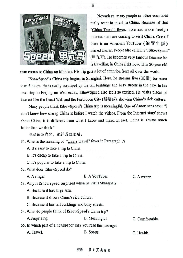 2024-2025学年广西西宁良庆区七年级下学期英语期末真题(图片版)(5)