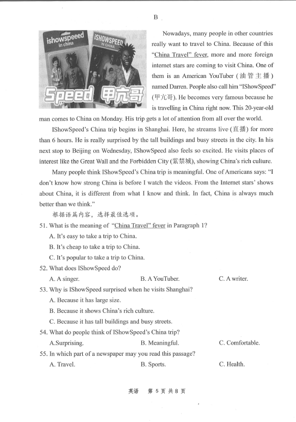 2024-2025学年广西南宁西乡塘区七年级下学期英语期末真题(图片版)(5)