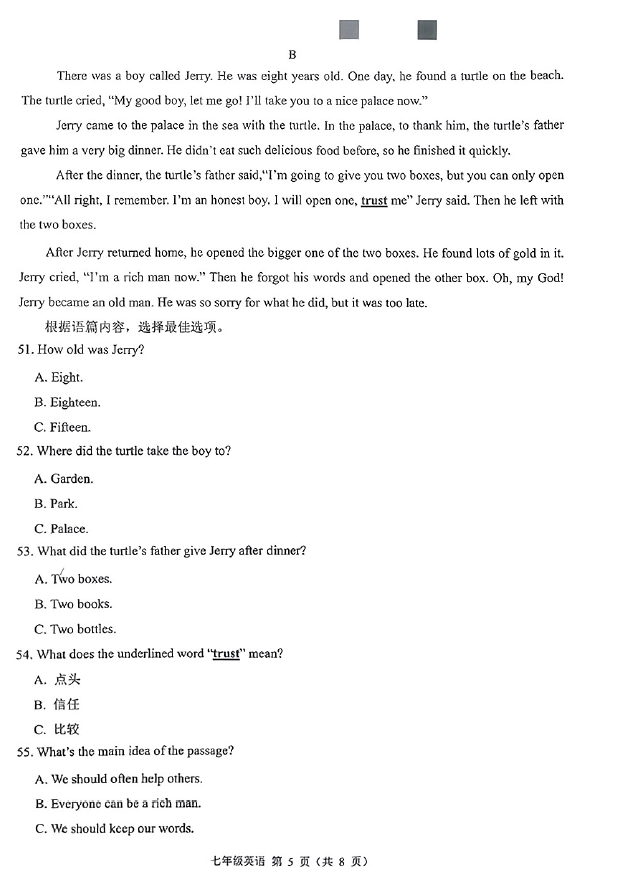 2024-2025学年广西南宁银海三雅学校七年级下学期英语期末真题(图片版)(5)