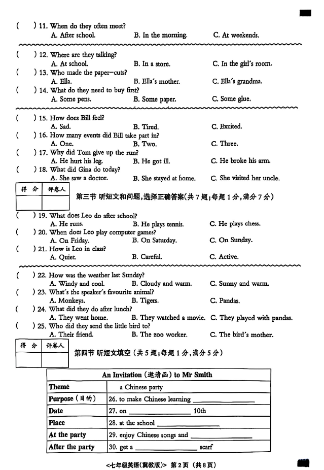 2024-2025学年河北邯郸南新区七年级下学期英语期末真题(图片版)(2)