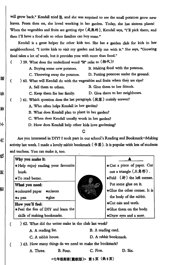 2024-2025学年河北邯郸南新区七年级下学期英语期末真题(图片版)(5)