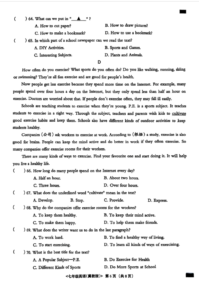 2024-2025学年河北邯郸南新区七年级下学期英语期末真题(图片版)(6)