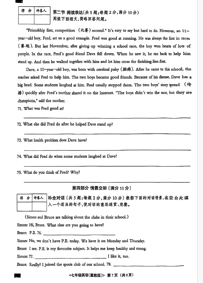 2024-2025学年河北邯郸南新区七年级下学期英语期末真题(图片版)(7)