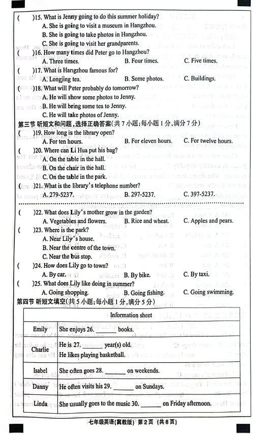 2024-2025学年河北沧州南皮县七年级下学期英语期末真题(图片版)(2)