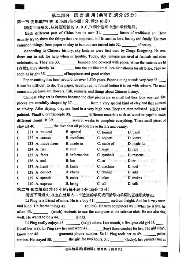 2024-2025学年河北沧州南皮县七年级下学期英语期末真题(图片版)(3)