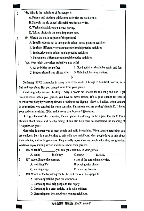 2024-2025学年河北沧州南皮县七年级下学期英语期末真题(图片版)(6)