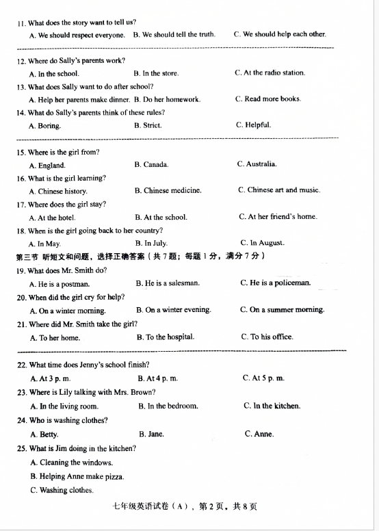 2024-2025学年河北石家庄赵县七年级下学期英语期末真题(图片版)(2)