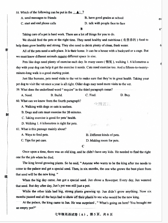 2024-2025学年河北石家庄赵县七年级下学期英语期末真题(图片版)(5)