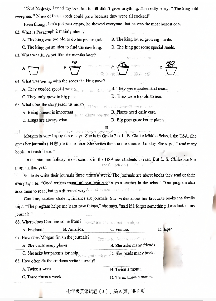 2024-2025学年河北石家庄赵县七年级下学期英语期末真题(图片版)(6)