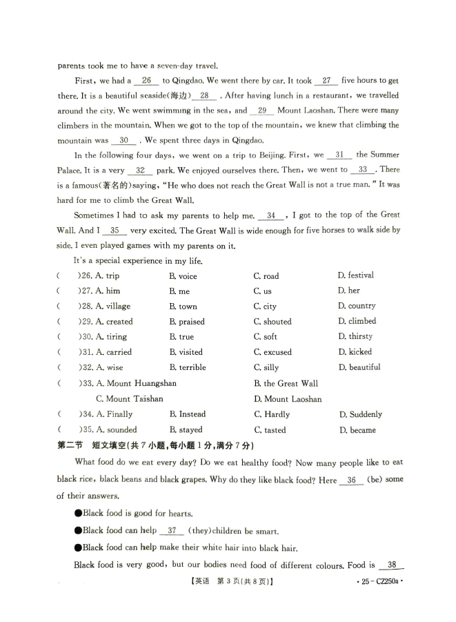 2024-2025学年河北唐山丰南区七年级下学期英语期末真题(图片版)(3)
