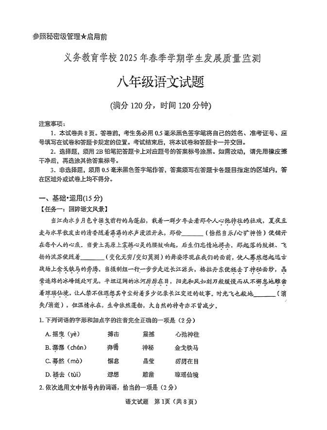2024-2025学年山东日照东港区八年级下学期语文期末真题(图片版)