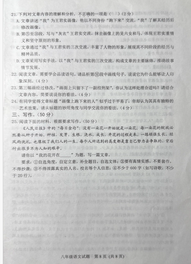 2024-2025学年山东日照五莲县八年级下学期语文期末真题(图片版)(8)