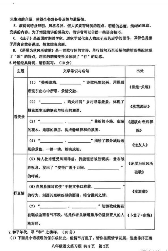 2024-2025学年山东泰安岱岳区八年级下学期语文期末真题(图片版)(2)