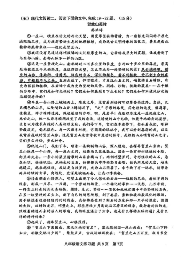 2024-2025学年山东泰安岱岳区八年级下学期语文期末真题(图片版)(7)