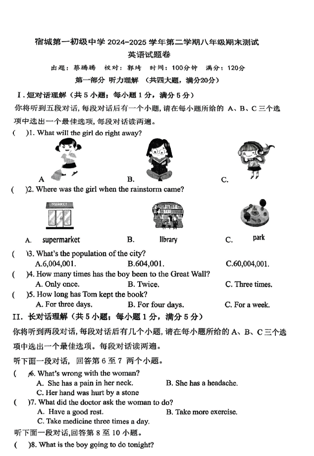 2024-2025学年安徽宿州一中八年级下册英语期末真题(图片版)
