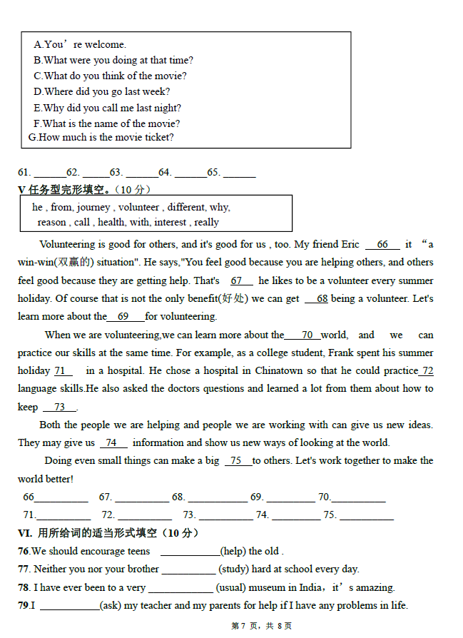 2024-2025学年甘肃武威民勤实验中学八年级下册英语期末真题(图片版)(7)