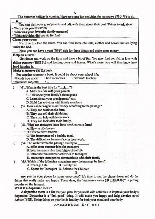 2024-2025学年广东惠州惠阳区八年级下册英语期末真题(图片版)(5)