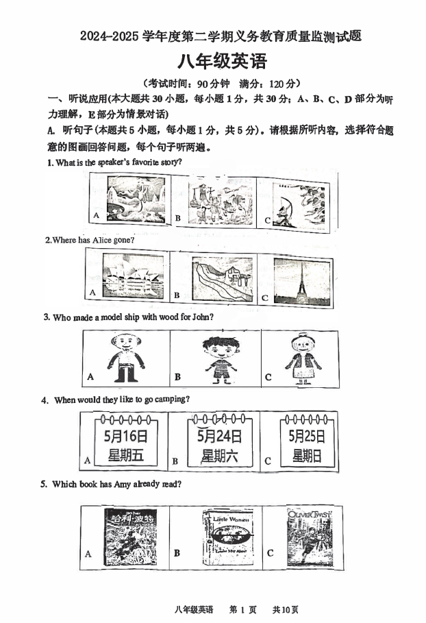 2024-2025学年广东江门蓬江区八年级下册英语期末真题(图片版)