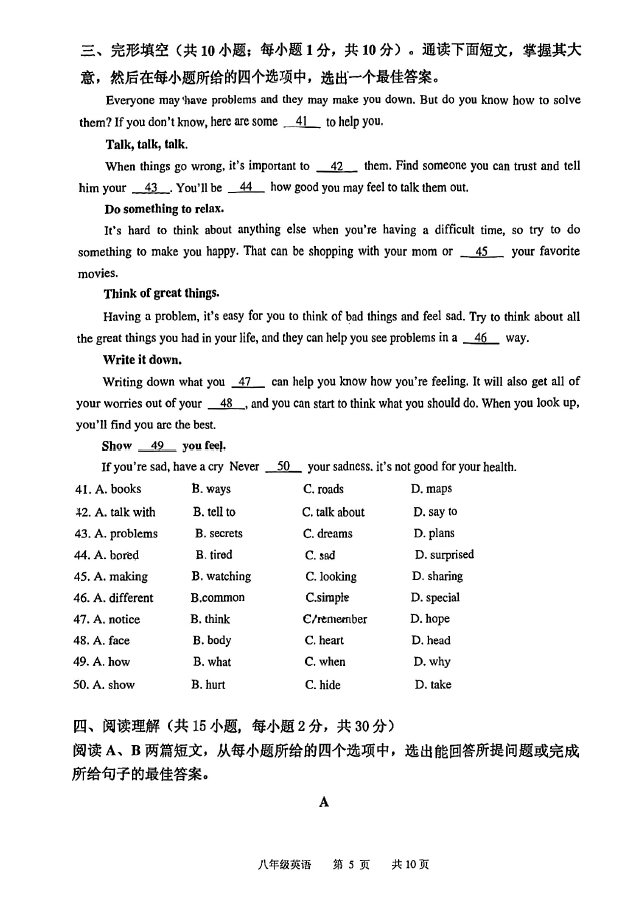 2024-2025学年广东江门蓬江区八年级下册英语期末真题(图片版)(5)