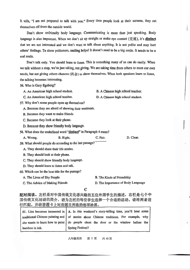2024-2025学年广东江门蓬江区八年级下册英语期末真题(图片版)(7)