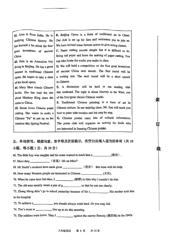 2024-2025学年广东江门蓬江区八年级下册英语期末真题(图片版)(8)