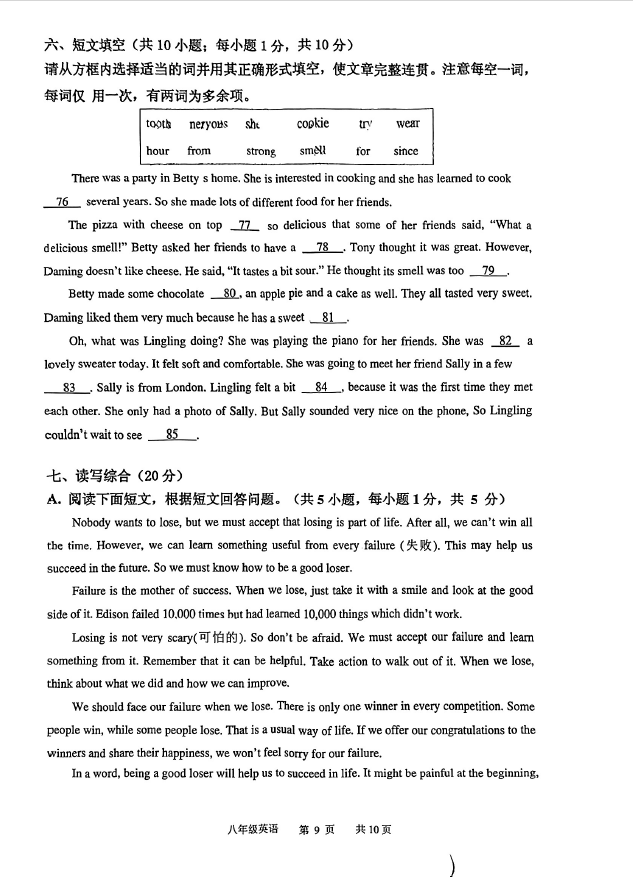 2024-2025学年广东江门蓬江区八年级下册英语期末真题(图片版)(9)