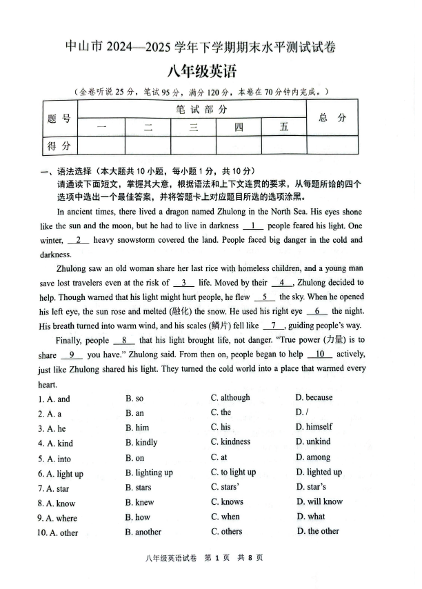 2024-2025学年广东中山八年级下册英语期末真题(图片版)