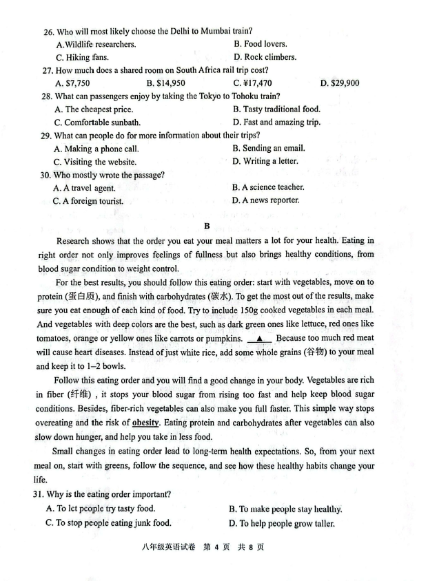 2024-2025学年广东中山八年级下册英语期末真题(图片版)(4)