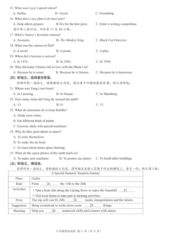 2024-2025学年广西南宁西乡塘区八年级下册英语期末真题(图片版)(2)
