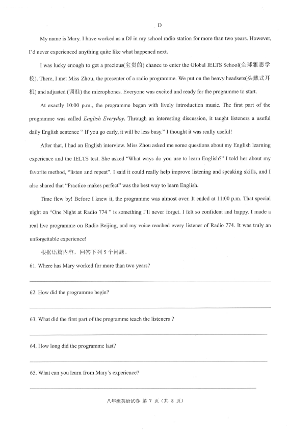 2024-2025学年广西南宁西乡塘区八年级下册英语期末真题(图片版)(7)