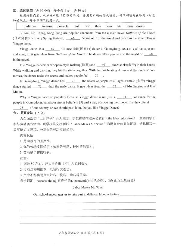 2024-2025学年广西南宁西乡塘区八年级下册英语期末真题(图片版)(8)