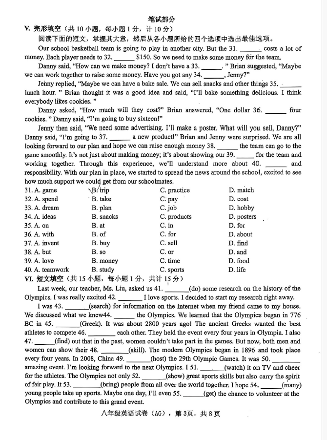 2024-2025学年河北保定安国八年级下册英语期末真题(图片版)(3)