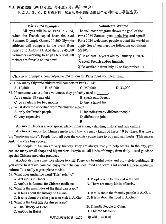 2024-2025学年河北保定安国八年级下册英语期末真题(图片版)(4)