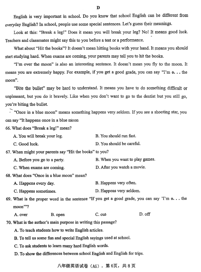 2024-2025学年河北保定安国八年级下册英语期末真题(图片版)(6)