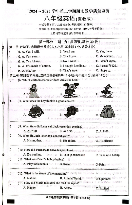 2024-2025学年河北沧州南皮县八年级下册英语期末真题(图片版)