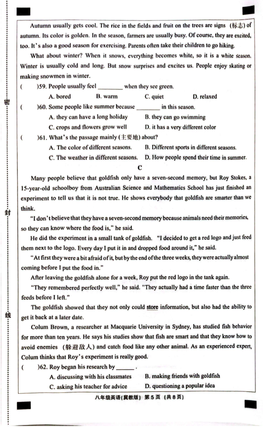 2024-2025学年河北沧州南皮县八年级下册英语期末真题(图片版)(5)