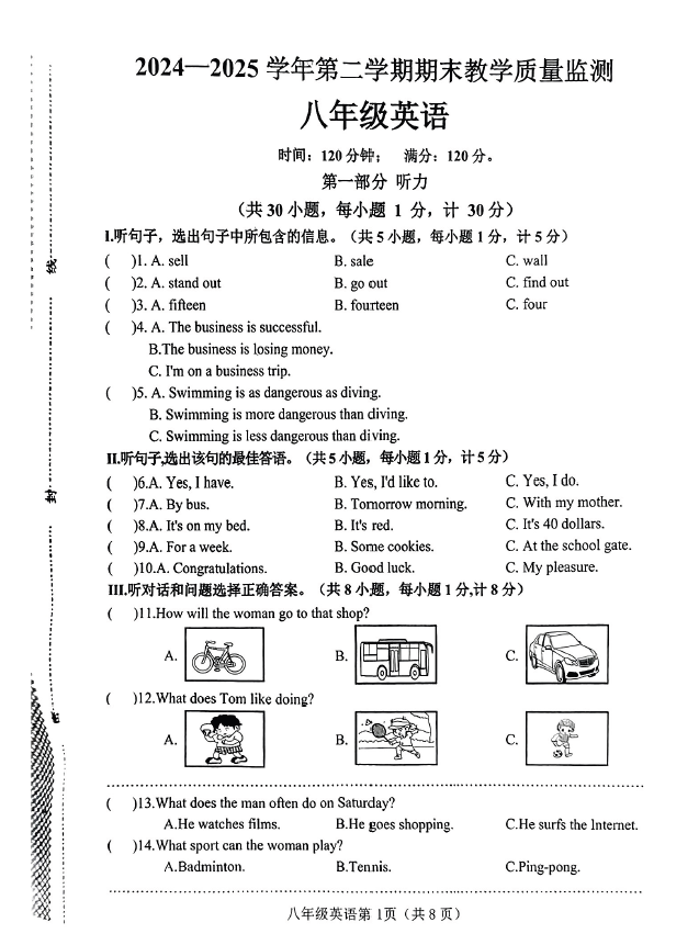 中考网整理了关于2024-2025学年河北邯郸大名县八年级下册英语期末真题(图片版),希望对同学们有所帮助,仅供参考。