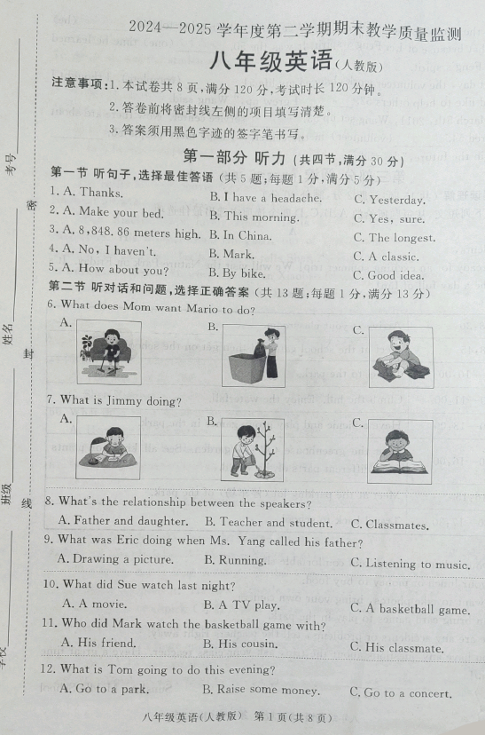 资料内容:【25年 初一 初二 初三期末考试真题】
