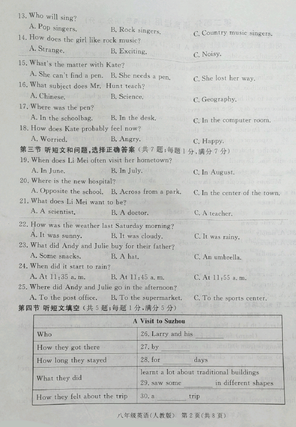 2024-2025学年河北廊坊霸州市八年级下册英语期末真题(图片版)(2)
