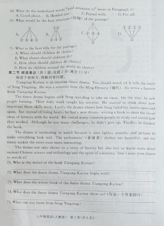 2024-2025学年河北廊坊霸州市八年级下册英语期末真题(图片版)(7)